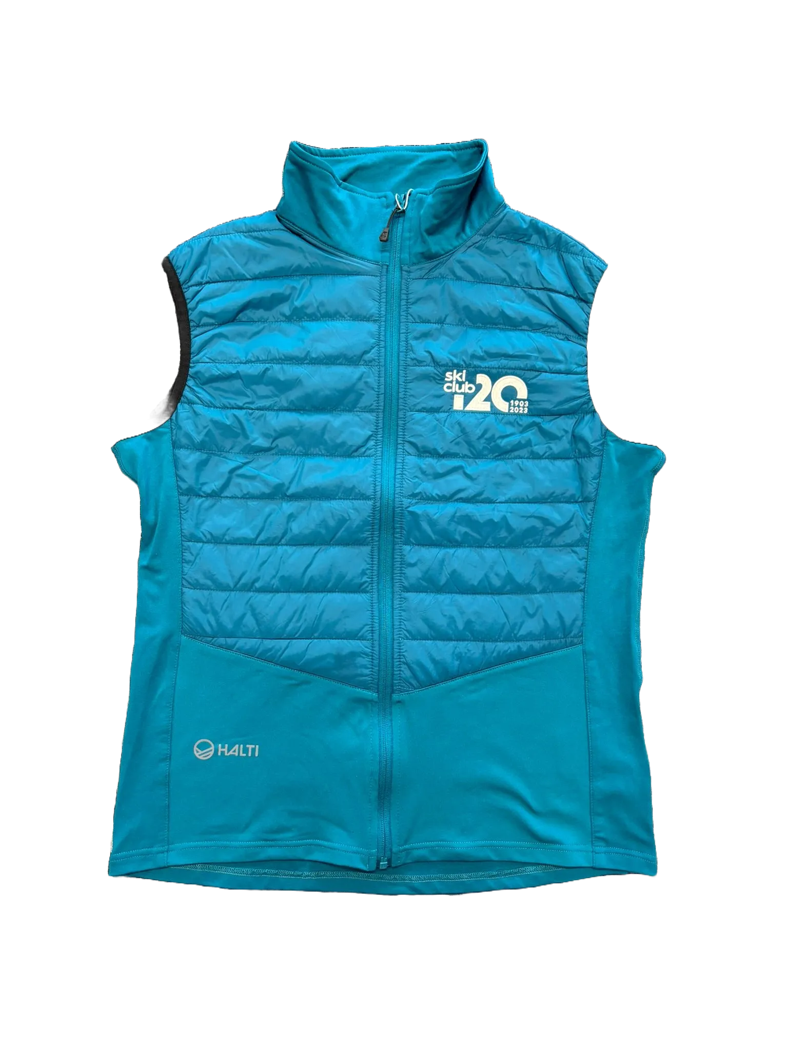 Men’s multipurpose vest with technical and flexible material combined with padded panels. The Dynamic insulation vest can be used on its own or under a jacket as a warming interlayer, depending on the conditions. The stretchy knitted fabric ensures good mobility and fit. Combination of flexible knitted fabric and padded panels. Halti ECO-product: The jacket has been made using surplus material from the textile industry. Material content: 50% Polyester, 50% Recycled Polyester. Embroidered with Ski Club 120th commemorative logo on chest and on back (between shoulders).